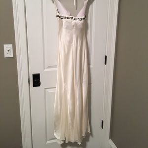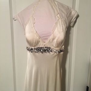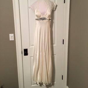 Perfectly fitted this gorgeous white gown can be worn for any formal occasion. Can be worn as your wedding gown, prom dress, any formal party. The delicate tie around the neck to the beautiful beading around the bodice, this dress is pure feminine perfection.