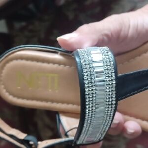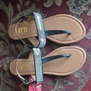 Nitti Black Thong Flat sandals With Rhinestone Strap, Sz 8