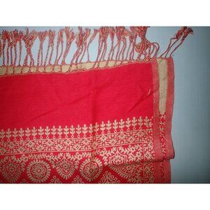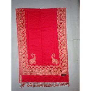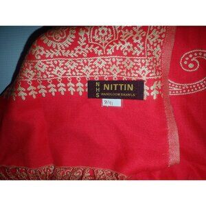 Nittin Handloomed Shawl Red Fringe Numbered wool fringe elegant Pashmina