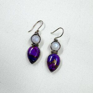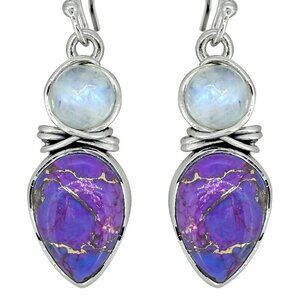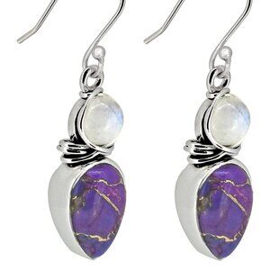 - Sterling silver purple copper turquoise and rainbow moonstone accent earrings - Threader back - Approx. 1.65" L - 10 x 14 mm, 7 x 7 mm - Imported