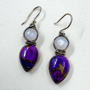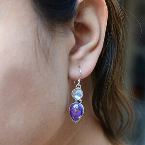 Nitya - Sterling Silver Purple Copper Turquoise Rainbow Moonstone Earring