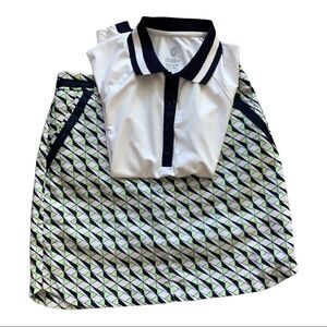 Nivo Golf Skort in White Blue and Green with 2 Front Slide in Pockets 2 Back