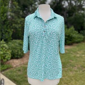 Elevate your style with this chic mint green leopard print top. Perfect for any occasion, this top offers a blend of comfort and fashion.