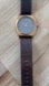 Description: Stunning etch gunmetal gray dial with rose-gold-tone hands, markers, and case. Beautiful Horween brown genuine leather strap that is made in the USA (Strap alone is a $60 value). Just cleaned and serviced with a new battery installed. Works well!