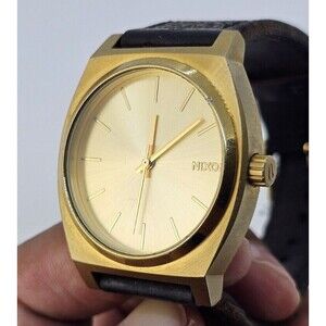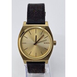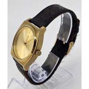 Nixon Minimal Time Teller Men's Watch 37MM Gold Dial Leather Bands New Battery