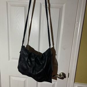Nixon Soft leather Black Patchwork Hobo shoulder/crossbody medium Bag ,braided strap.flop top closure the inside lining had a side zipper two side pockets. Pre owned in good used condition normal wear. See all pictures any questions please message.V1