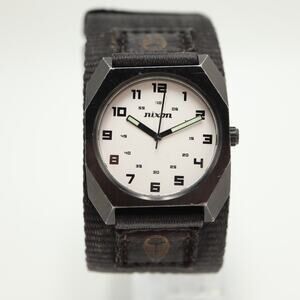 Nixon The Scout Mens Watch 35mm Silver Dial Black Nylon Strap with New Battery