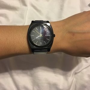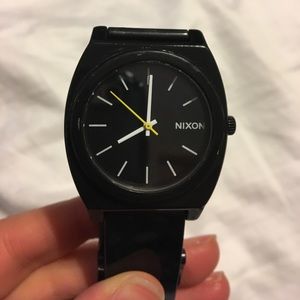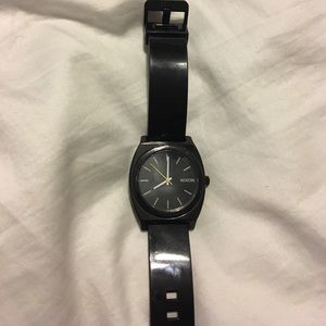 Black Nixon time teller watch in black matte rubber. In good condition, with a few scratches that are not very noticeable. Fun, simple watch that can be worn year round. Needs a new battery.