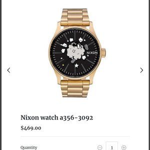 NwT 90th anniversary Disney watch by Nixon featuring a mockeymouse fight cloud..this watch is so awesome sleek and stylish...has a perfect weight too it..beautiful sheen of matte gold and the nice contrast of the black and gray mckymouse fight cloud...90 on the dial...mickey mouse circles on the claso..special edition bag...comes from smoke free pet free home adult owned stored and cared for all my products...this watch is new with tags..offers accepted