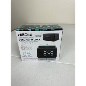 Nizoni Wireless Charging Dual Alarm Clock, USB Type C Charging Port OS Black Ne