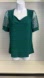 No. 015 Green Asymmetrical Blouse with Sheer Short Sleeves