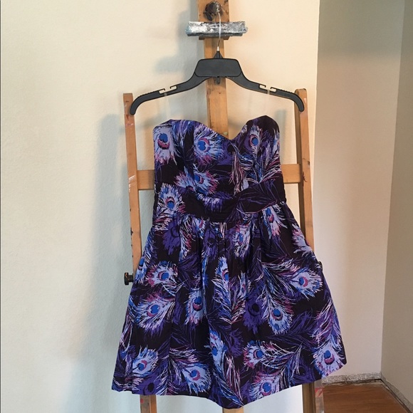 Froever21 Strapless Purple Peacock Dress, great condition, barely worn. Great for a night out with your boo!
