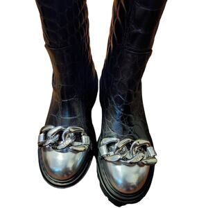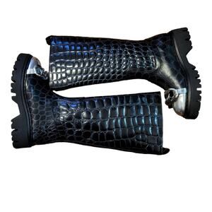 No. 21 Croc embossed black platform knee boots size US 9 EUR 39