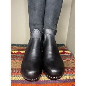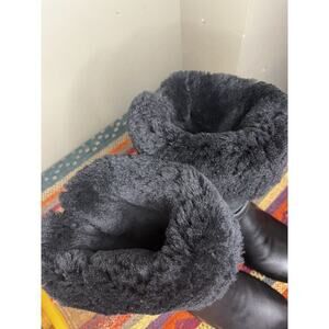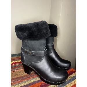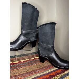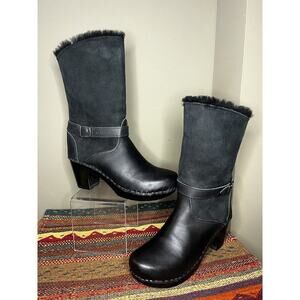 Black Leather tall Shearling Lined Winter Clog boots Size 42.