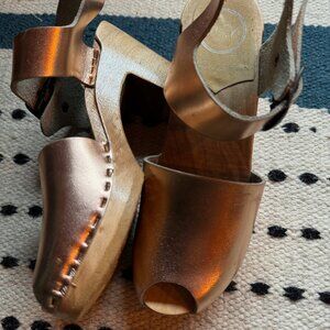 Rose Gold No.6 Sandal Clogs with mid heel, lightly worn