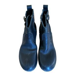 No. 6 Leather Clog Buckle Boot Womens 40* Black Leather Zipper Ankle Mid Heel