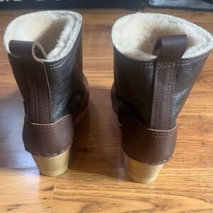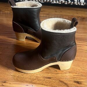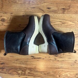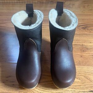 These are in excellent preowned condition. Leather cowhide, Rubber sol, Lightweight wood midsole, these are a winter friendly version of this brand famous clogs.