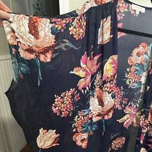 Umgee Floral Kimono Long Cardigan Wrap Jacket, featuring a mixed multicolored floral print in a long, duster style.