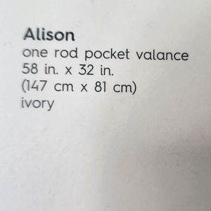 New in package No 918 Alison Ivory Color Lace ONE Rod Pocket Valance 58" Wide x 32" Long. Package contains one valance.