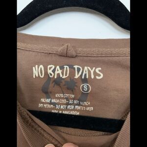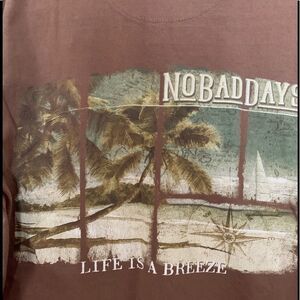No Bad Days brown short sleeve shirt, preowned, good condition, palm trees printed on the back, size Small.
