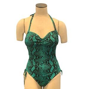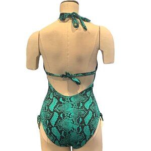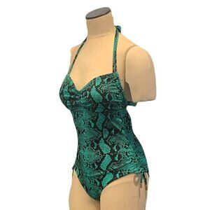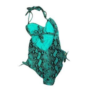 No Boundaries 1-Piece Swimsuit Snakeskin Print Sz M 7-9 Teal Blue & Black 206i