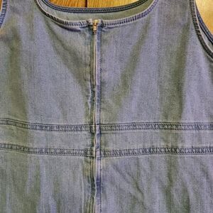 Empire waist denim mini dress with a zip up back and walking slit. Not vintage but definitely has that 90s Look.