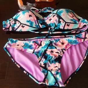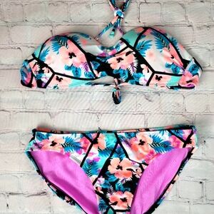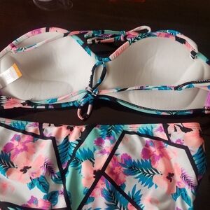 No Boundaries vibrant Floral 2 piece bikini swim suit, previously owned, great condition, juniors sizes, bottom L 11-13, top M 7-9
