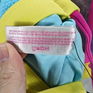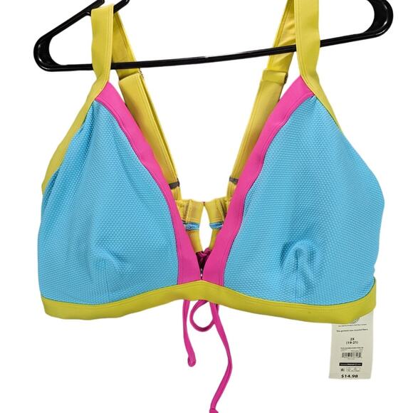NOBO, No Boundaries, Bikini Top, Swim suit top, Women's or Junior Size 2X or 19-21. Blue, Yellow and Pink. Ready to wear. No rips or stains. See photos for measurements and details. Cutesy, Beachy, Coastal, Pool Party, Preppy, Retro, Boho styles.