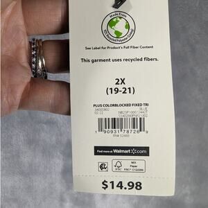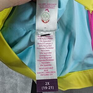No Boundaries Bikini Top Womens 2X 19-21 Juniors Swimsuit Blue Pink Beachy Retro