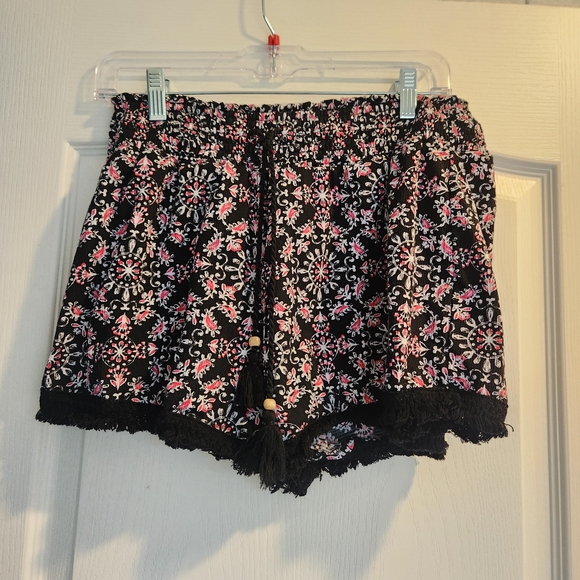 Chic black shorts with vibrant pink and white floral design by No Boundaries. Accented with tassels. Size extra large excellent pre-owned condition. Smoke free home.