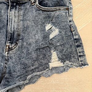 These No Boundaries jean shorts in black offer a trendy distressed look with a raw, frayed hem. Perfect for casual outings, they combine style and comfort effortlessly.