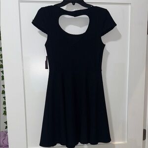 Chic black mini dress with stylish cutout. Perfect for casual outings.