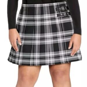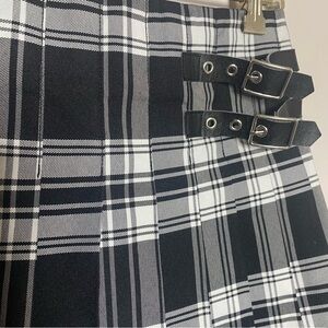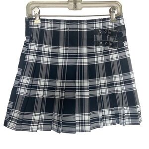 No Boundaries Black White Plaid Double Buckle Pleated Mini Skirt
