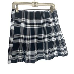 No Boundaries Black White Plaid Pleated Mini Skirt