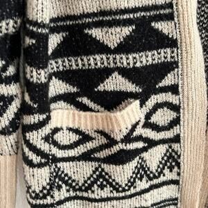 Super soft acrylic polyester blend long cardigan by No Boundaries. The sweater have a beautiful Black and Tan Aztec geometric print.
