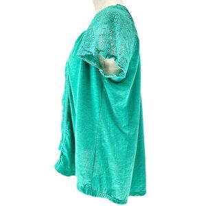 No Boundaries Blouse Juniors XL (15-17) Green Lace-Trimmed SS Poly Spandex Blend