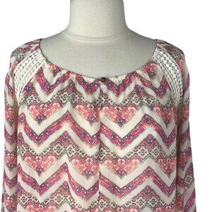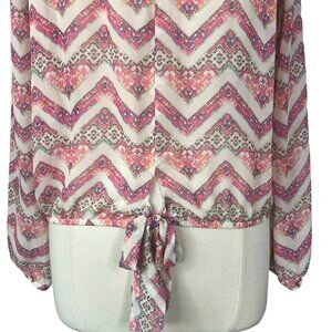 No Boundaries Blouse Shirt Womens Medium Pink Cream Long Sleeves New