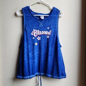 No Boundaries Blue Blessed Tank Top Size XL. Lightweight with a drawstring around the hem. Excellent condition.