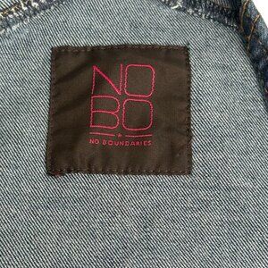 This No Boundaries jumpsuit features a stylish blue denim fabric with adjustable shoulder straps for a customizable fit. The shorts-style bottom offers a casual and comfortable look, perfect for any laid-back occasion.