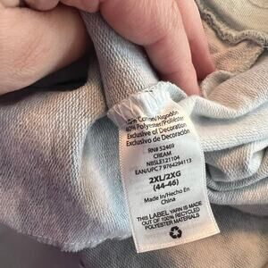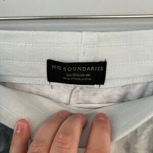 No Boundaries Blue & White Tie Dye Pull On Shorts in women's Plus Size 2X / 44 - 46. Waist is elasticized with drawstring and measures approx 42 in around when laid flat and unstretched, rise measures approx 12.75 in, and inseam approx 8 in. Shorts have pockets and are in good used condition with no flaws or stains other than some minor wash wear. Please see close-up pictures for condition details. Athleisure. Loungewear. Lounge.