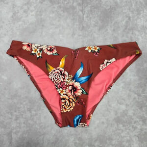 No Boundaries Brown Blue Floral Tie Medium Bikini Bottom Swimwear