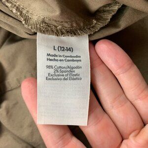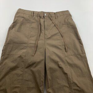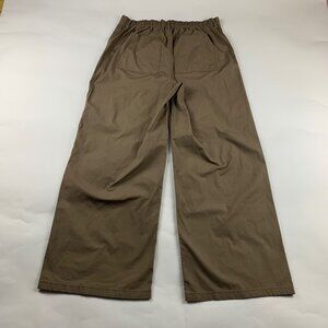 Excellent used condition, cotton stretch blend lightweight canvas pant has no notable signs of natural wear - like new. 4 pockets, high rise, zip front, back elastic waist, belt loops, front drawstring ties, ultra wide legs. Size Large, please reference measurements for sizing & fit inquiries.