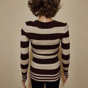 No Boundaries Brown/Tan Striped V-Neck Long Sleeve Sweater Size M(7-9) NWOT