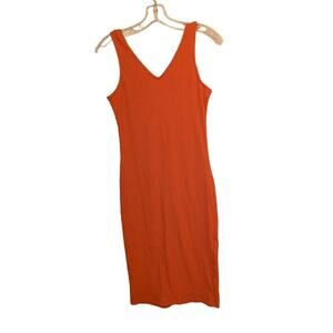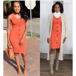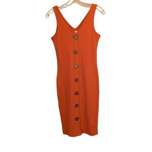 No Boundaries, Burnt orange bodycon tank dress button accent, M(7-9) flirty bold