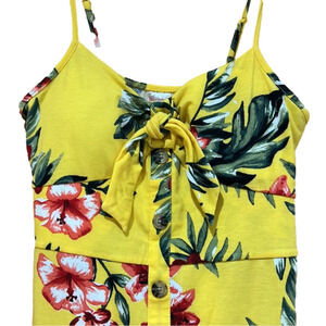 No Boundaries tropical floral button-front maxi dress. It features adjustable spaghetti straps, padded cups, and a front tie. New with tags. Size medium (7/9).