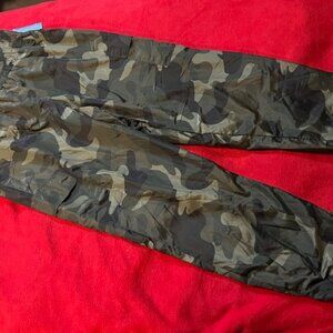 Brand new with tags No Boundaries camo wind pants in size L (11–13). Lightweight and easy to move in—great for school, practice, or weekend wear. Elastic waist for comfort and drawcord ankle hems to cinch tight over sneakers or boots.