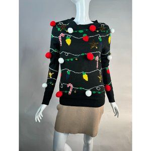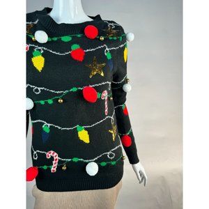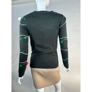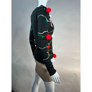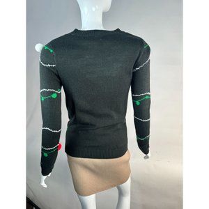 No Boundaries Christmas Garland and Light Sweater Small Black Acrylic