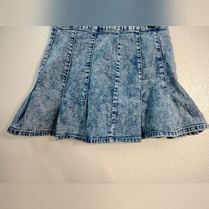 No Boundaries Classic Blue Denim Pleated A-line Mini Skirt Zip Back Sz Small