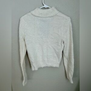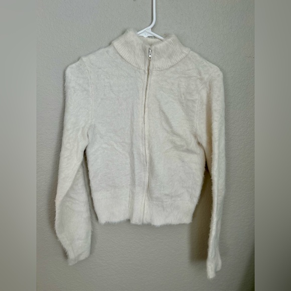 No Boundaries Cream Fuzzy Zip-Up Sweater Size 7 Juniors | Soft Cozy Mock Neck