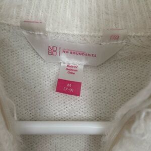 No Boundaries sweater, fuzzy zip up, cream jacket, juniors size 7, cozy winter top, soft zip sweater, mock neck jacket, warm knit sweater, everyday casual wear, trendy teen fashion, pre-loved condition